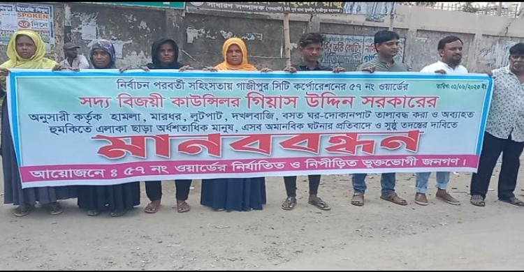 গাজীপুরে নির্বাচন পরবর্তী সহিংসতার প্রতিবাদে মানববন্ধন