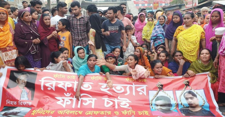 গাজীপুরে চাঞ্চল্যকর রিফাত হত্যার বিচারের দাবীতে ঢাকা-ময়মনসিংহ মহাসড়ক অবরোধ