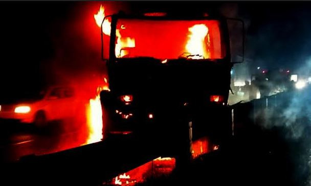 গাজীপুরে চলন্ত ট্রাকে দুর্বৃত্তদের অগ্নিসংযোগে চালক আহত