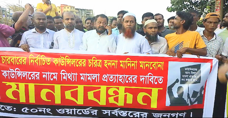 গাজীপুরে মামলা প্রত্যাহারে দাবিতে মানববন্ধন