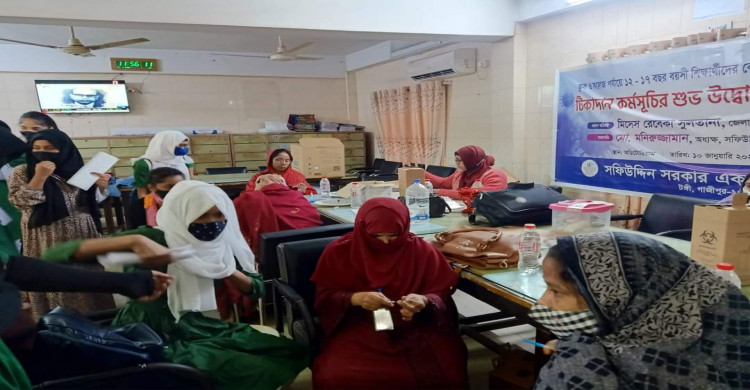 করোনা প্রতিরোধক টিকার আওতায় সফিউদ্দিন সরকার একাডেমি এন্ড কলেজে শিক্ষার্থীরা