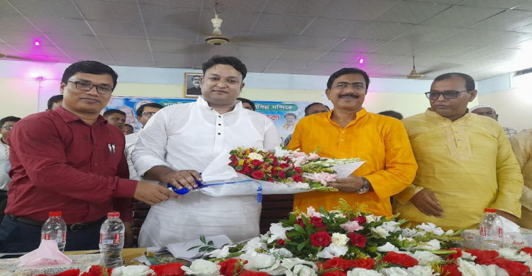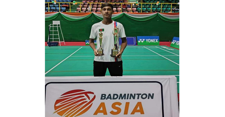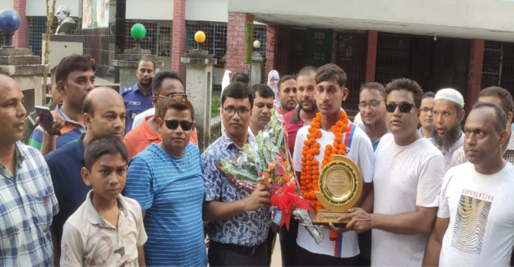 ইন্টারন্যাশনাল ব্যাডমিন্টনে চ্যাম্পিয়ন মোস্তাকিমকে বিরামপুরে সংবর্ধনা