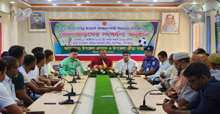 জাতীয় ইভেন্টে অংশগ্রহণকারী বিরামপুর উপজেলার কৃতী খেলোয়াড়দের সংবর্ধনা