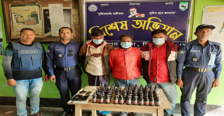 বিরামপুরে ৯০ বোতল ফেন্সিগ্রীফসহ তিন মাদক ব্যবসায়ী গ্রেপ্তার: বাইক জব্দ